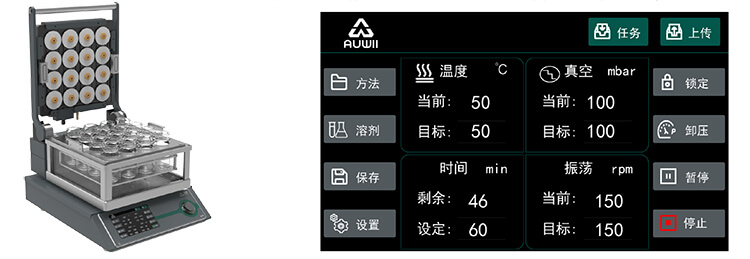 網絡版智能軟件——功能更強大 APE 系列高通量真空平行濃縮儀搭載了彩色觸摸屏,可以輕松實現水浴溫度、真空蓋板加熱溫度、振蕩速率、真空度、工作時間等功能設置。可以選配 wifi 數據交互功能實現與實驗室管理系統的對接。