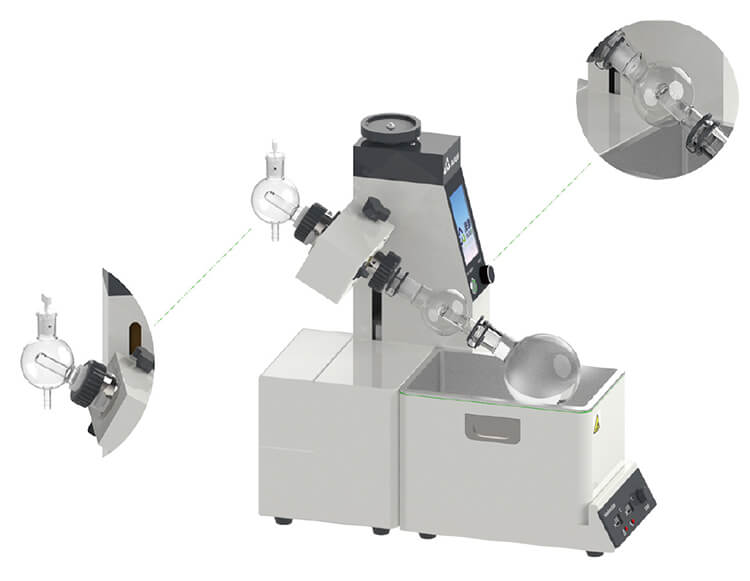 體積是傳統旋蒸三分之一 mini 旋轉蒸發儀創新性采用旋轉軸縱向設計,將產品寬度縮小到25cm,其寬度僅是傳統旋轉蒸發儀的三分之一,1.8 米標準通風櫥可以放置 5臺 mini 旋轉蒸發儀,充分節約通風櫥空間資源。